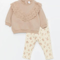 Ensemble tenue Lc Waikiki floral Sweat col Claudine et pantalon molletonné non gratté 3-6 mois