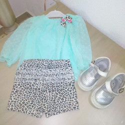 Tenue place 12_18 vert d eau tigré manches bouff...
