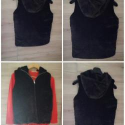 Veste fourrure à reflet noir et bleu, très peu p...