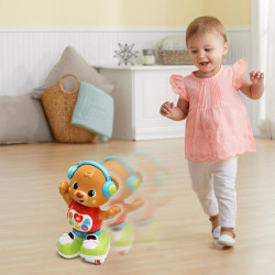 Autre marqueAttrape si tu peux ! Follow Me Franklin est un ours actif qui patine, tourne et vacille sur le sol, encourageant votre tout-petit à danser et à ramper après lui. Lorsque votre enfant s'approche, Franklin réagit avec des sons ludiques et des phrases idiote