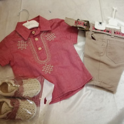 Porté 2 fois chemise, short et ceinture taille 9/...