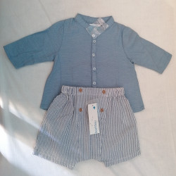 Tenue chemise manches longues bleue et short rayé...