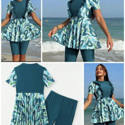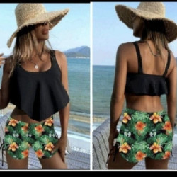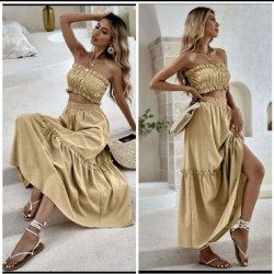 Jupe short + top avec volants + chapeau en paille ...