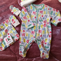 Grenouillère avec moufles et bonnet portée 1 seu...